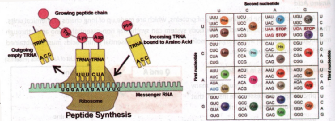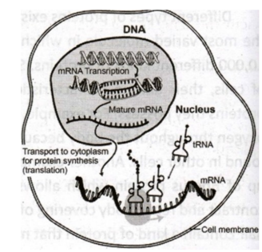 help of the mRNA. The transfer of code from the mRNA to a small protein