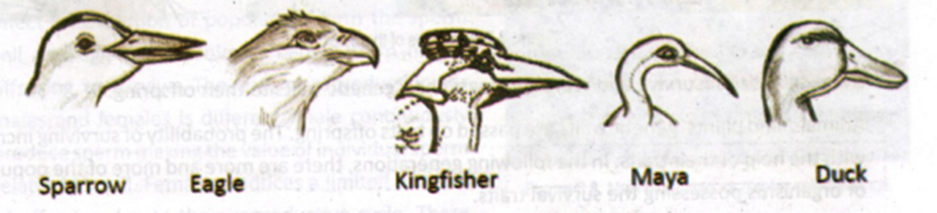 example, the beaks of birds such as eagles, mayos, kingfishers, and ducks